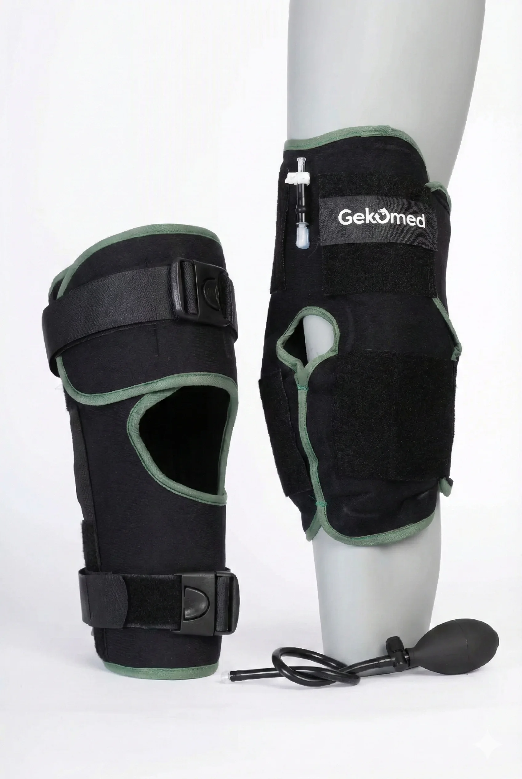 Gekovery Frost® est une attelle de genou de reprise d’activité associant maintien dynamique et froid compressif. Sa structure ouverte, ajustable par sangles, stabilise le genou pendant le mouvement, tandis que ses packs de froid avant + arrière et sa pompe de compression aident à diminuer la douleur et réduire le gonflement après l’effort ou en phase post-rééducation. Conçue pour allier confort et efficacité, elle est pensée pour être réutilisée via la filière Gekomed (collecte et remise en état en fin de traitement).